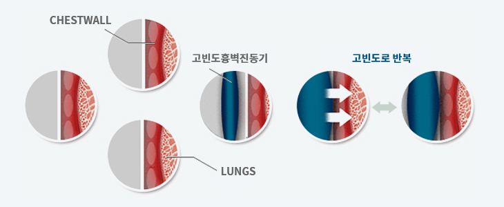 고빈도 흉벽진동요법은 공기진동발생기에서 생성된 고빈도진동(High Frequency Vibration)을 환자가 착용한 조끼를 통해 체외 흉벽에 전달함으로써 체내에 체외의 공기압력차이를