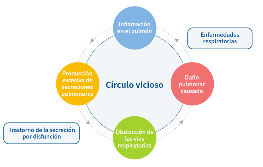 La viscoelasticidad y la fibrosidad de las secreciones pulmonares (esputo) se reducen físicamente y se produce un efecto de cizallamiento en el moco respiratorio.